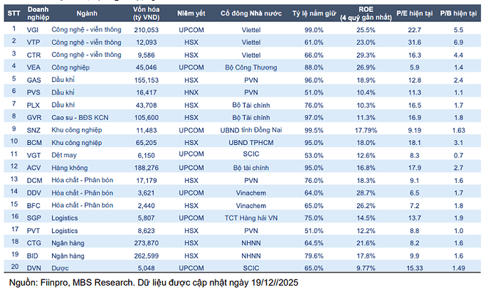 Chỉ số tài chính của một số doanh nghiệp niêm yết có vốn Nhà nước. (Nguồn: MBS tổng hợp).