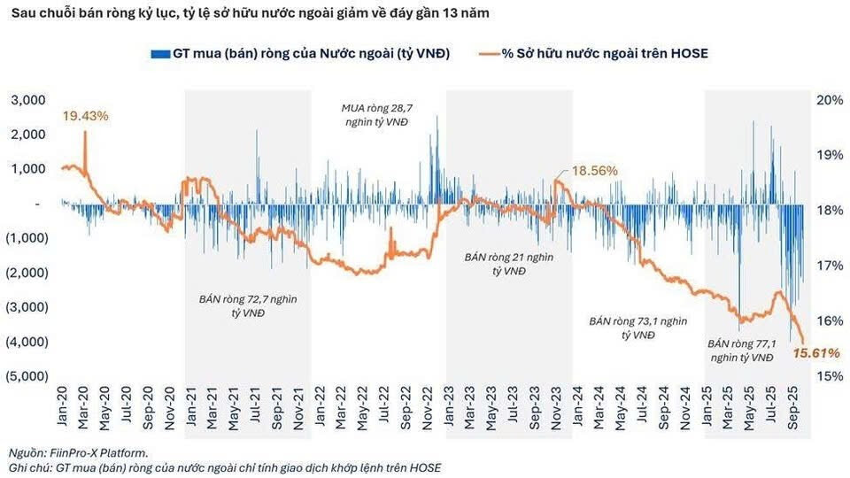 Năm 2025: Dù bán ròng kỷ lục 104 nghìn tỷ, VN-Index vẫn vượt đỉnh cũ 1.530 điểm.