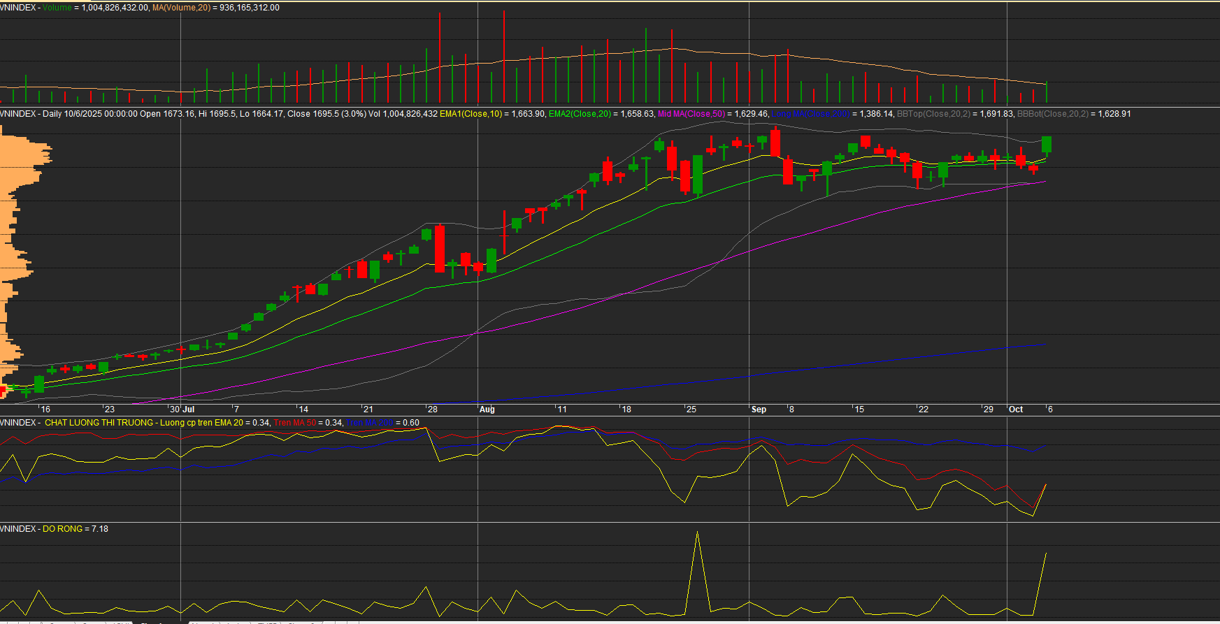 ⇒ Tổng thể: giá và khối lượng, dòng tiền đồng pha có thể đang ngầm báo hiệu thông tin tích cực về nâng hạng thị trường( nếu được thì có thể nâng hạng 50%)