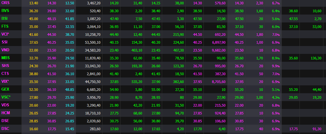 - Thứ 1: gần như toàn bộ cp nhóm chứng khoán đang tăng giá trần hoặc gần trần. Đây là nhóm ảnh hưởng trực tiếp từ thông tin nâng hạng