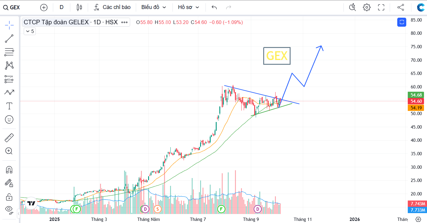 Hưởng lợi: Là cổ phiếu “ăn theo” dòng tiền đầu tư công & FDI. Với room ngoại rộng, GEX dễ lọt vào tầm ngắm ETF. Ngoài ra, liên quan đến hệ sinh thái tài sản số (VIXEX) cũng khiến GEX trở thành “ẩn số thú vị” – không phải ai cũng dám nắm sớm.