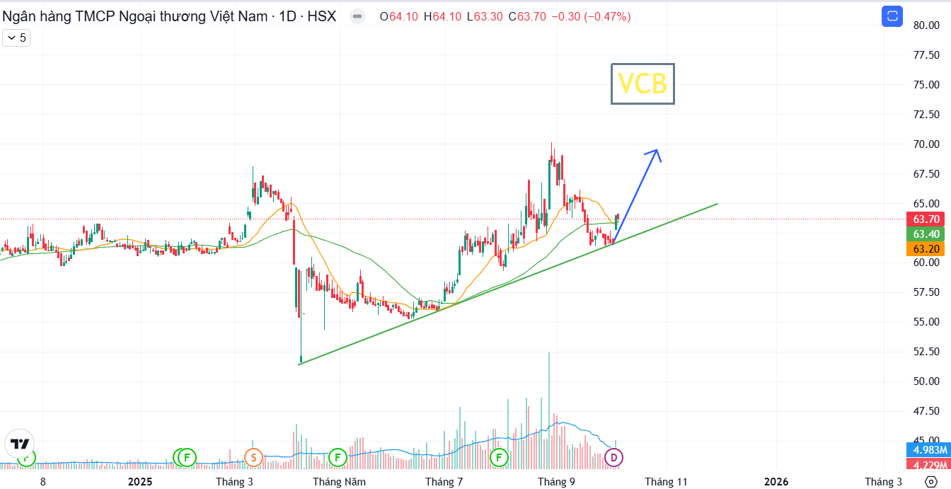Hưởng lợi: VCB là lựa chọn hàng đầu cho các quỹ ngoại muốn nắm giữ ngân hàng Việt Nam dài hạn. Mảng ngoại hối và thanh toán quốc tế là lợi thế riêng biệt giúp VCB hưởng lợi mạnh khi dòng vốn nước ngoài tăng tốc.