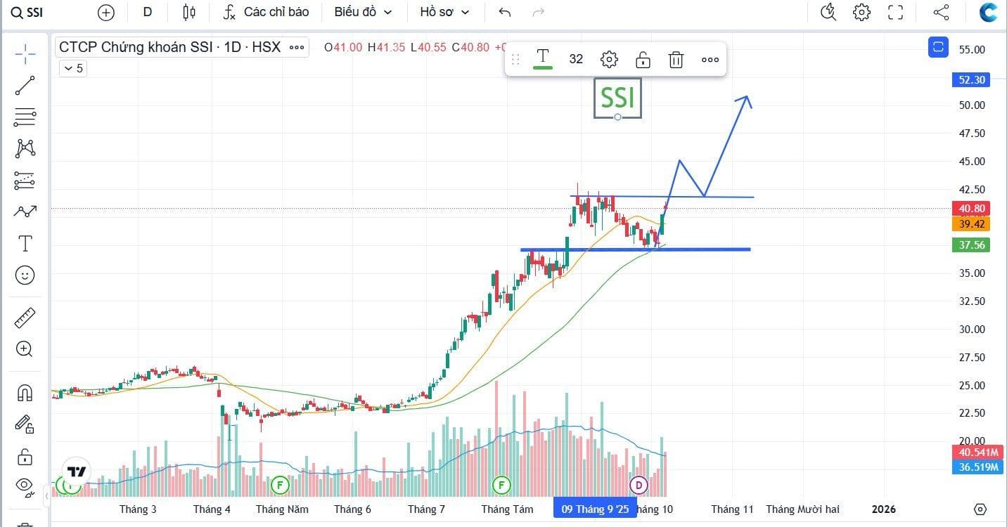 Hưởng lợi: SSI nằm trong rổ VN30 & FTSE Vietnam, ước hút 50–90 triệu USD sau nâng hạng. Thị trường sôi động sẽ kéo mạnh doanh thu môi giới và margin. Ngoài ra, SSI đang chuẩn bị bước vào mảng tài sản số, kỳ vọng mở hướng tăng trưởng mới.