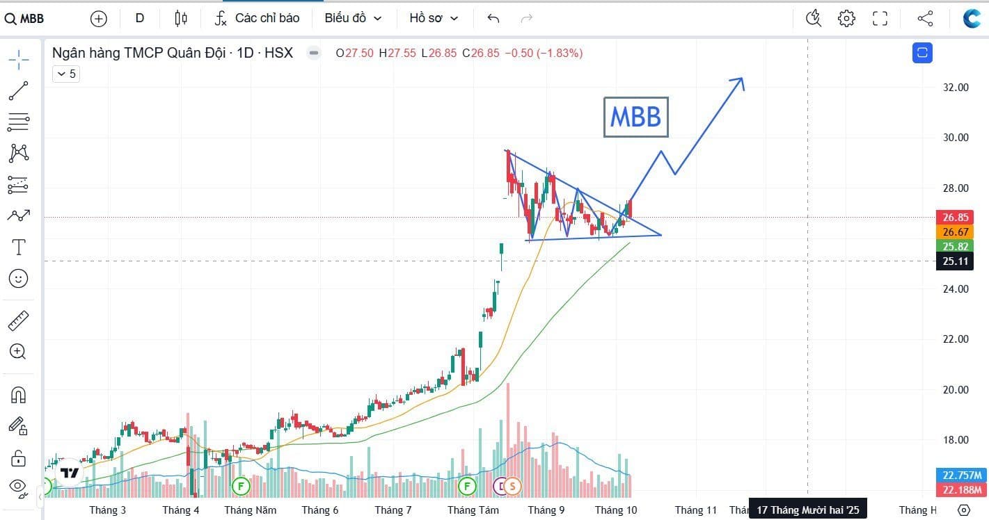 Hưởng lợi: MBB tăng trưởng ổn định, hệ sinh thái tài chính toàn diện, định hướng phát triển ngân hàng số & tài sản số. Là “ngôi sao” trong nhóm ngân hàng tư nhân, dễ được khối ngoại săn đón.