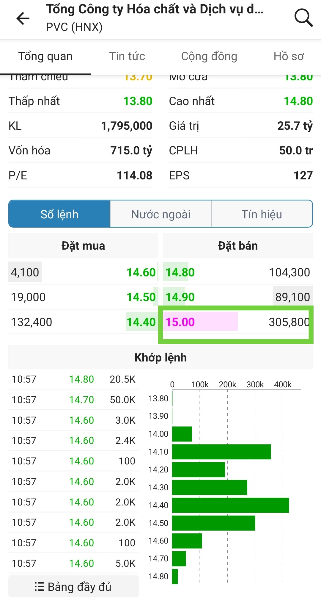 Mỗi bước giá, chặn bán một cục 400-500k. Ý đồ nhà cái là…cứ từ từ nha mọi người. Khi nào muốn lên, lại rút lại lệnh bán.