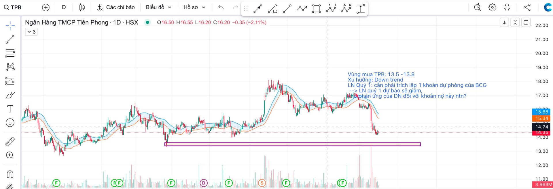 Tâm lý thị trường vẫn tiêu cực: Dù số liệu tài chính của TPB không quá đáng lo, nhưng khi ngân hàng bị nhắc đến trong các lùm xùm liên quan đến doanh nghiệp có vấn đề, tâm lý nhà đầu tư vẫn bị ảnh hưởng mạnh.