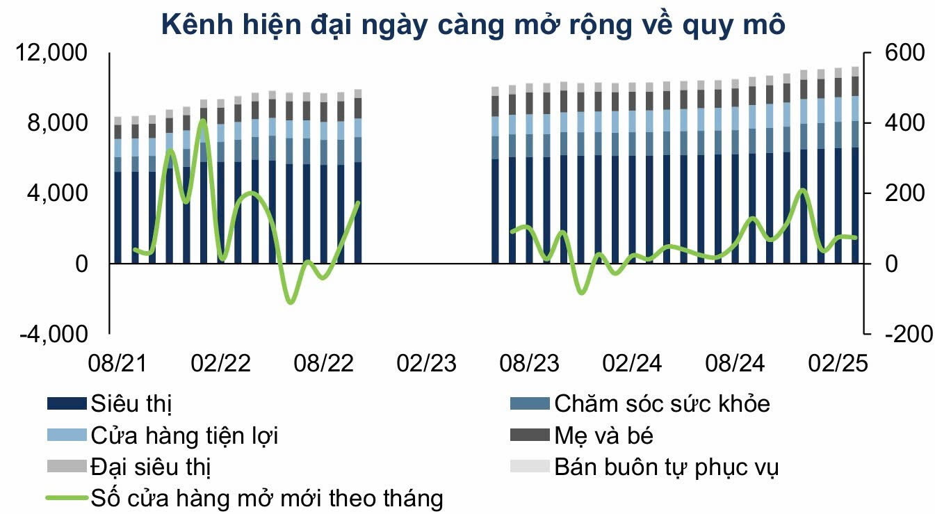 Kênh bán lẻ hiện đại ngày càng mở rộng về quy mô và mạng lưới. Các DN bán lẻ đầu ngành cũng đang đẩy mạnh mở rộng cửa hàng của mình! Đáng chú ý, cả Bách Hóa Xanh và Winmart đều đã đạt điểm hòa vốn trong năm 2024, điều này chứng minh mô hình kinh doanh của họ không chỉ đúng hướng mà còn rất hiệu quả.