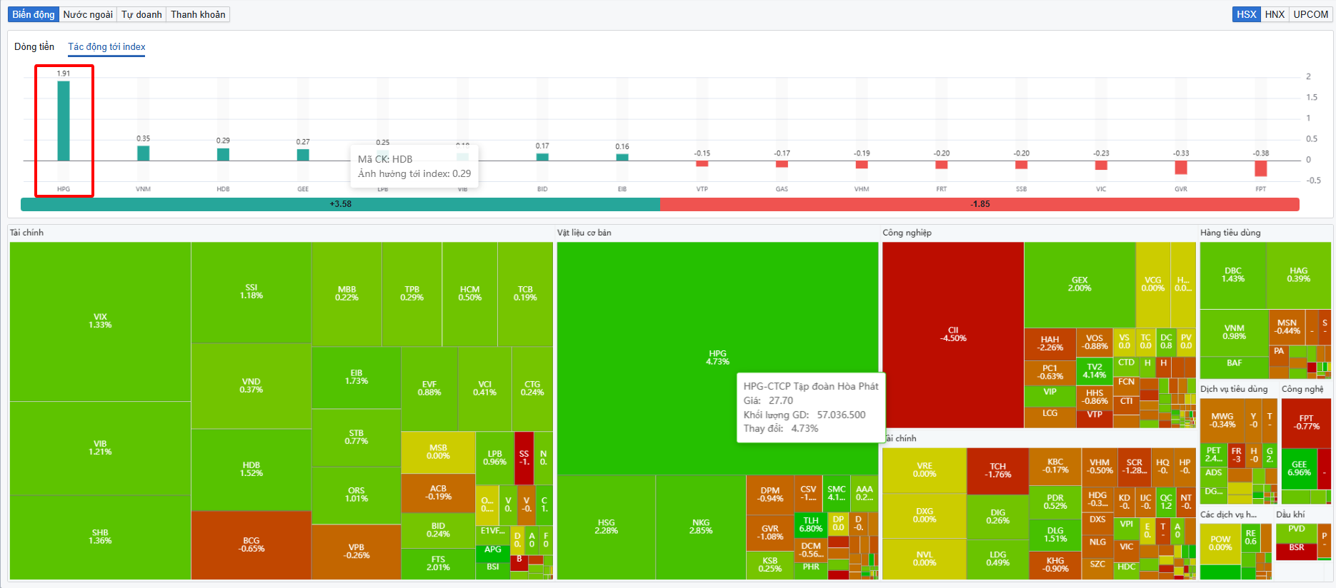 Sự ổn định và giữ tốt cũng như luân phiên lẫn nhau giữa các mã trong nhóm VN30 từ ngân hàng->họ nhà VINCOM->HPG->VNM