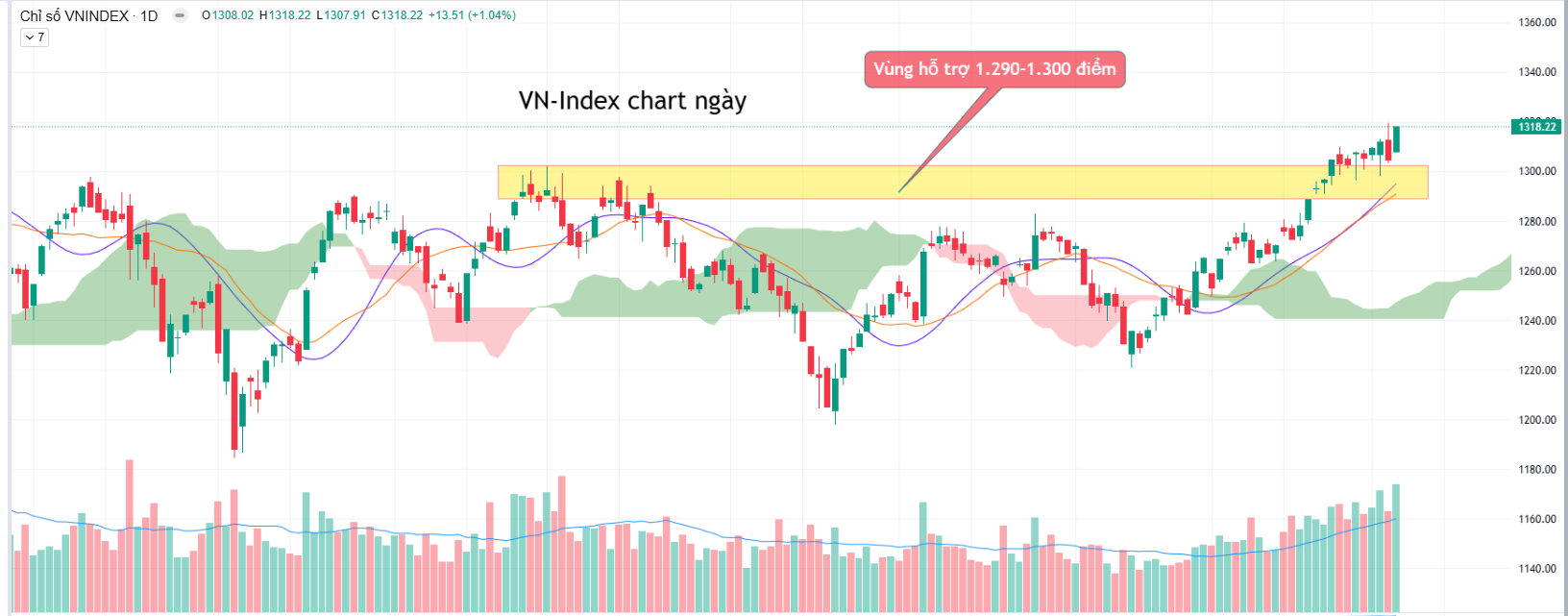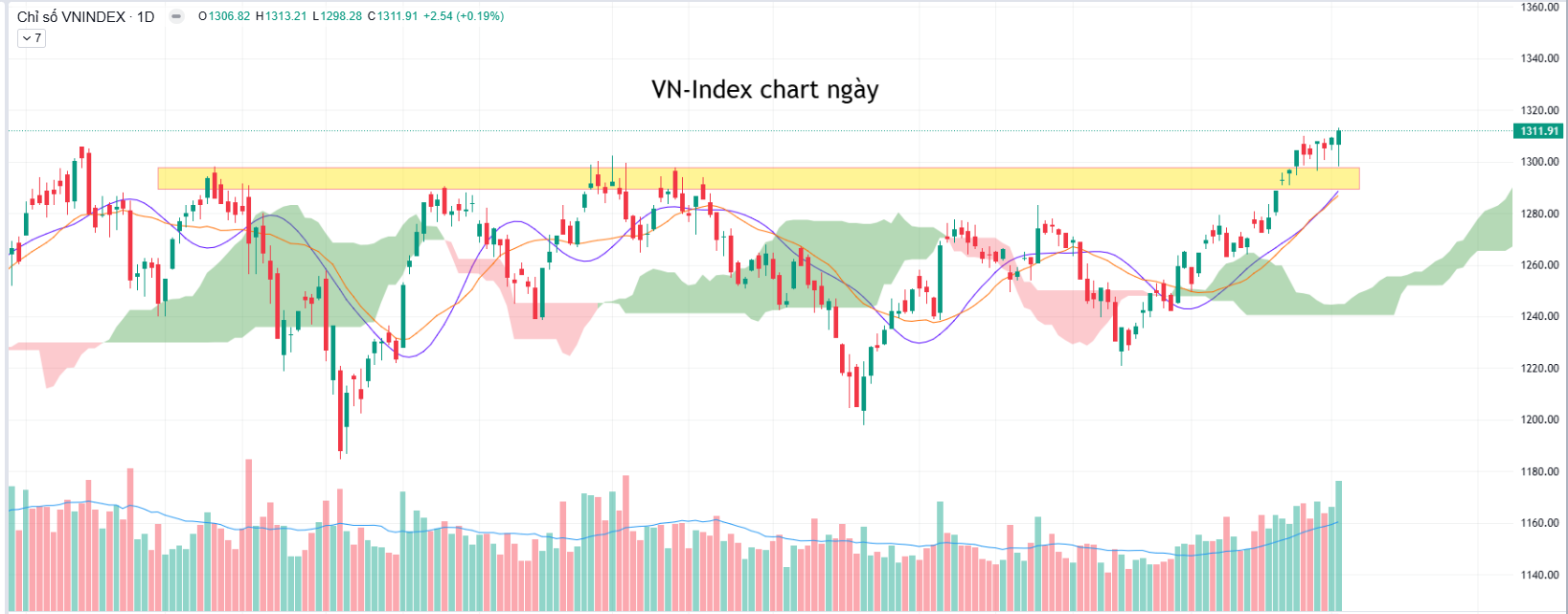 Thị trường hiện tại vẫn duy trì xu hướng tích cực sau khi vượt qua mốc 1.300 điểm và đã có 7 phiên liên tiếp kiểm tra thành công mốc hỗ trợ này.