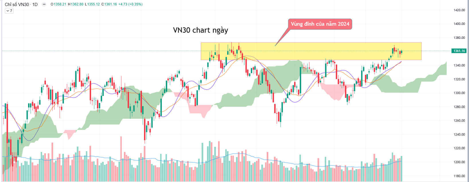 Vùng nay nên chậm lại. Thị trường có 6 tuần tăng liên tiếp nên cần thời gian để hấp thụ lượng hàng ở vùng giá cao. Theo dõi hàng về của những phiên thanh khoản cao như hôm nay, nếu lượng hàng này về tài khoản NĐT tiếp tục có lãi nghĩa là VN-Index sẽ còn tăng tiếp, ngược lại chỉ số sẽ lùi lại từ từ. Khi vị thế trading; lướt sóng; T+;… không còn hiệu quả dòng tiền có xu hướng giảm dần giao dịch.