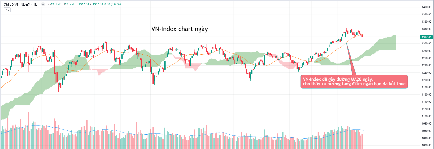- Việc đảo trụ dần đi đến giới hạn, thị trường không xuất hiện thêm các trụ mới nhập cuộc hoặc các trụ đang điều chỉnh tích lũy quay trở lại đà tăng=>dòng tiền trung hạn-dài hạn bắt đầu chờ đợi