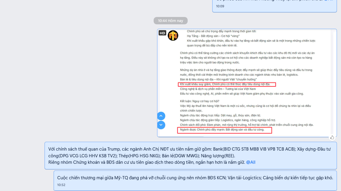 Do đó Anh Chị NĐT đã chốt lời ở vùng giá cao, canh giải ngân trở lại với mã mục tiêu/cổ phiếu được hỗ trợ bởi đà tăng trưởng của nền kinh tế/có KQKD tăng trưởng/tích lũy trở lại sau nhịp điều chỉnh và chuẩn quay lại nhịp tăng/… như Ngân hàng; Xây dựng-ĐTC; Thép; Bán lẻ; Điện; KCN; Hàng không-du lịch;…Riêng BĐS dân dụng và CK vẫn ưu tiên đánh ngắn theo sóng ngành, theo dòng tiền hoặc tin tức.