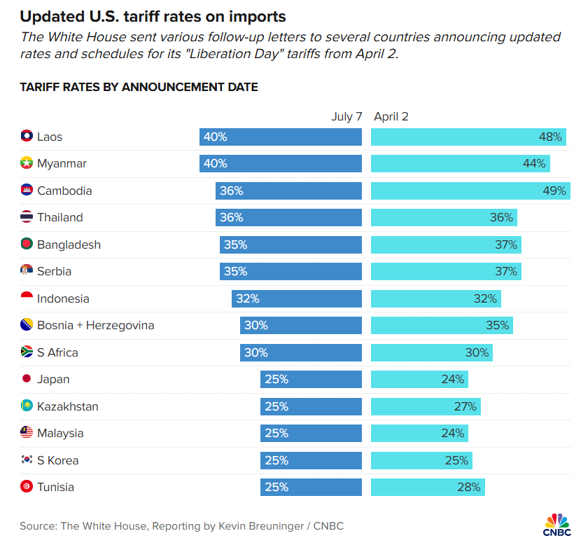 Tuy nhiên trong các bức thư do ông Trump ký cũng nêu rằng Mỹ “có thể” sẽ xem xét điều chỉnh các mức thuế mới này, “tùy thuộc vào mối quan hệ giữa quốc gia đó với Mỹ”.