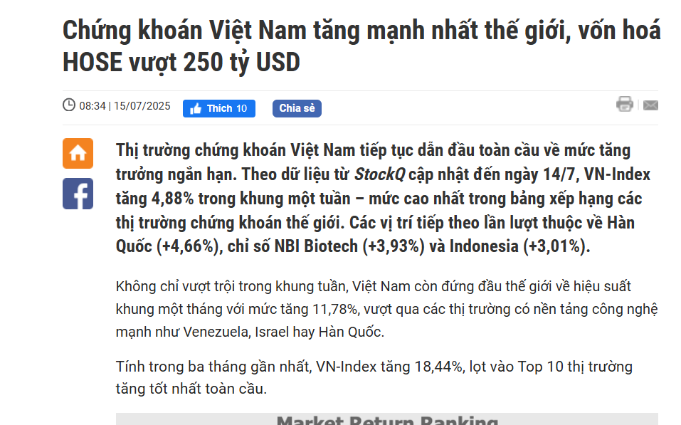 Thị trường đang nhận được sự hỗ trợ của dòng tiền đến từ các yếu tố vĩ mô như nâng hạng, đẩy mạnh tăng trưởng GDP, tín dụng chảy mạnh vào nền kinh tế,…