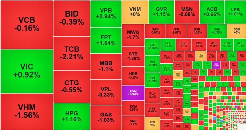 Có đến gần 65% cổ phiếu quay đầu giảm hơn 1% so với giá mở cửa.