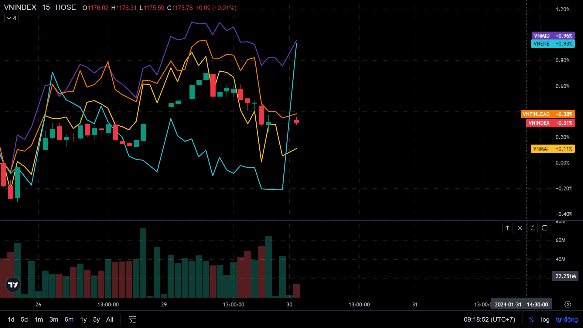 • Cổ phiếu trung nguồn (PLX, GAS): thấp hơn (PLX tăng 11%, GAS giảm 8%).