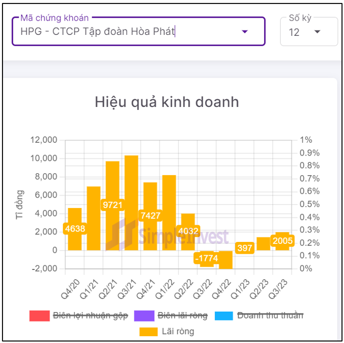 *HSG: Lợi nhuận sau thuế quý 3/2023 của HSG đạt 438 tỷ, đã tăng mạnh so với đầu năm do giá thép đang hồi phục tốt.