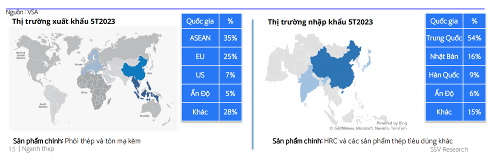 Tuy nhiên ngành thép Việt Nam 10 tháng đầu năm 2023 vẫn đạt được kết quả tích cực từ hoạt động xuất khẩu khi sản lượng xuất khẩu sắt thép các loại đạt trên 9,1 triệu tấn, tăng trưởng 30,7% so với cùng kỳ năm 2022. Trong đó có tháng 5 và tháng 6 Việt Nam trở thành quốc gia xuất siêu thép với sản lượng xuất khẩu sắt thép đạt trên 1 triệu tấn.