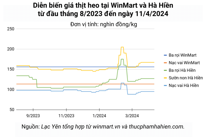 | Giá thịt nạc vai | đồng/kg | 95.000 | 95.000 | 0 |