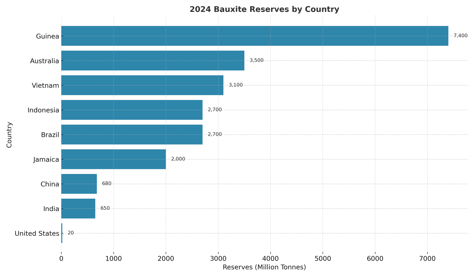 Theo công bố năm 2024 của Cục Khảo sát Địa chất Mỹ (USGS), Việt Nam hiện sở hữu khoảng 3,1 tỷ tấn bô xít, đứng thứ 3 thế giới, chỉ sau Guinea (7,4 tỷ tấn) và Úc (3,5 tỷ tấn). Trong khi đó Trung Quốc chỉ có 680 triệu tấn và Mỹ có 20 triệu tấn. Như vậy, Việt Nam nắm trữ lượng lớn gấp khoảng 4 lần cả Mỹ và Trung Quốc cộng lại.
