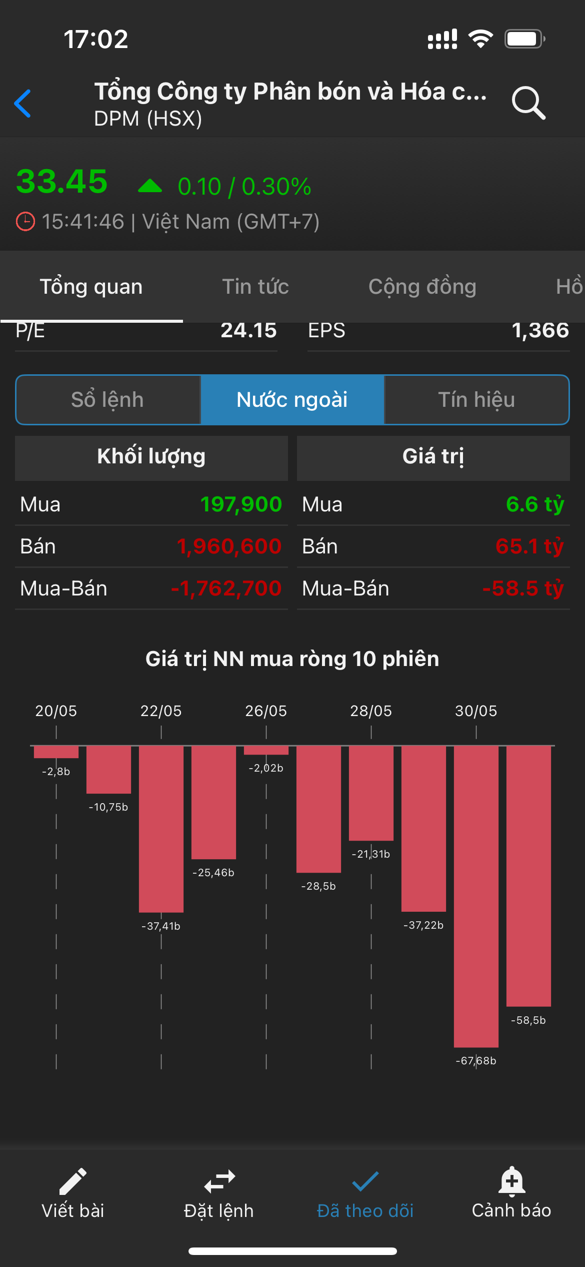 Lúc dpm giá 38-40 ln vẫn lẹt đẹt pe vẫn cao thì nhà nhà luật thuế vat các idol các broker đua nhau vẽ VAT cũng như pvs lô B vậy thì ae nào ko có niềm tin bán thôi. Đầu tư là đơn giản vậy thôi mà giả sử 4 dữ liệu trên ko như kỳ vọng của Lê thì lê Sút là xong chấm dứt chuyên tình. Lê chẳng yêu hay ghét cp nào cả nhưng mua vì lý do gì thì nên bán vì lý do đó