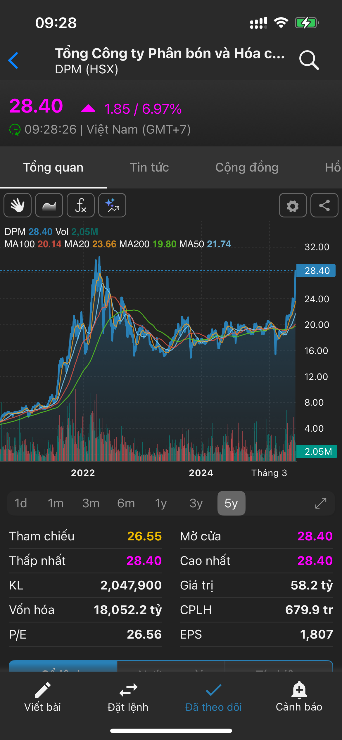 Thực ra mua DPM khá an toàn vì vùng giá dưới 35 là tích lũy nền khá lâu gần 2 năm giờ dòng tiền vào thì nước lên thuyền lên thôi ae mua giá 33 ăn thêm cổ tức thì quá hời và fair rồi biết hạ giá vốn xíu thì cũng chẳng thua gì bank chứng bds đâu.