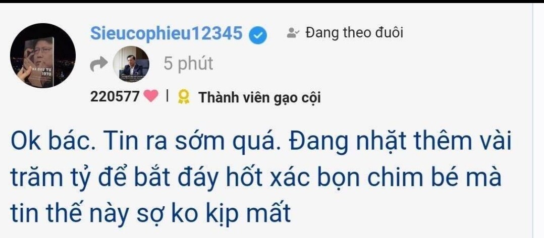 Đm còn toàn các con giời ko nắm giữ cp bđs vào phán như đúng rồi nghe tức hết cả đít!