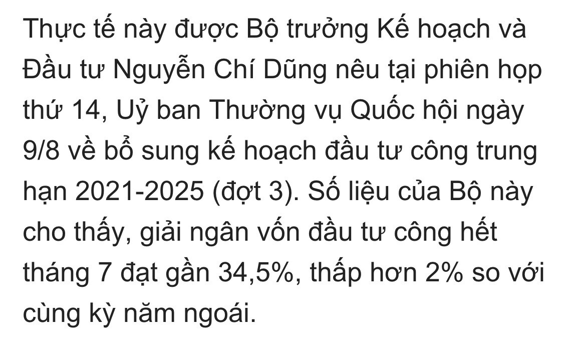 - Đầu tư công 7 tháng dự đạt 34% (6,25%)
