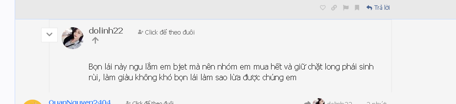 Haha, tôi nói cầu DIG yếu chúng nó nhảy vào cắn xé như mấy con dại. Giờ thì viêm họng hết không thấy sủa câu nào nữa. Nhìn lệnh bán là thấy nó đang xả hàng đấy