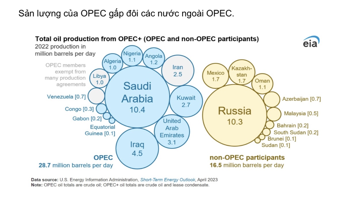 Nhắc đến dầu khí thì ko thể ko nhắc đến opec một tổ chức ảnh hưởng giá dầu toàn cầu vì sao giá dầu giảm về 60 usd như hiện này một phần là các nước Opec muốn gia tăng thị phần sau khi bị mất 1 phần vào lái buôn Nga và Mỹ một phần đến từ tác động Trump mặc dù giá dầu giảm mạnh là kịch bản Nga chẳng bao giờ mong muốn. Nhưng opec với trùm sò Saudi Arabia thì giá dầu về 20 usd họ vẫn có lời
