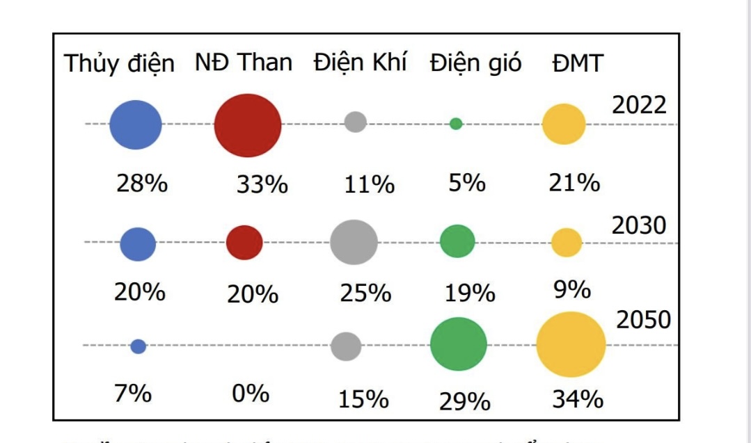 Mảng năng lượng khác với cam kết năng lượng sạch thuỷ điện đã tới hạn thì quy hoạch đến 2030-2050 buộc chúng ta phải tăng năng lượng tái tạo và năng lượng hạt nhân lên thôi thường gdp tăng trưởng 1% thì yêu cầu năng lượng tăng tương ứng