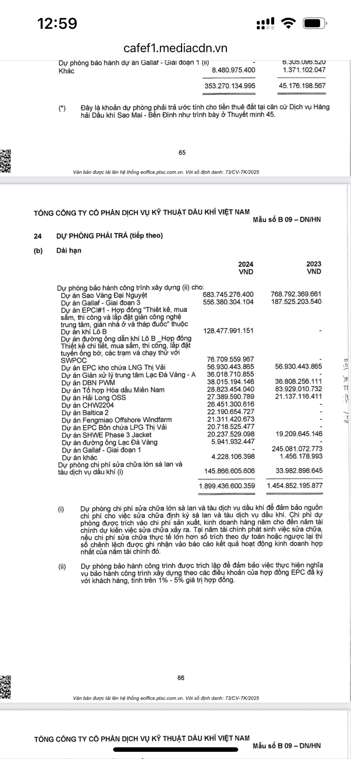 2024 chưa vào cao điểm của lô B, các dự án điện gió nhưng pvs có khoảng 1.8k tỷ bảo hành theo từng dự án tử 1-5%