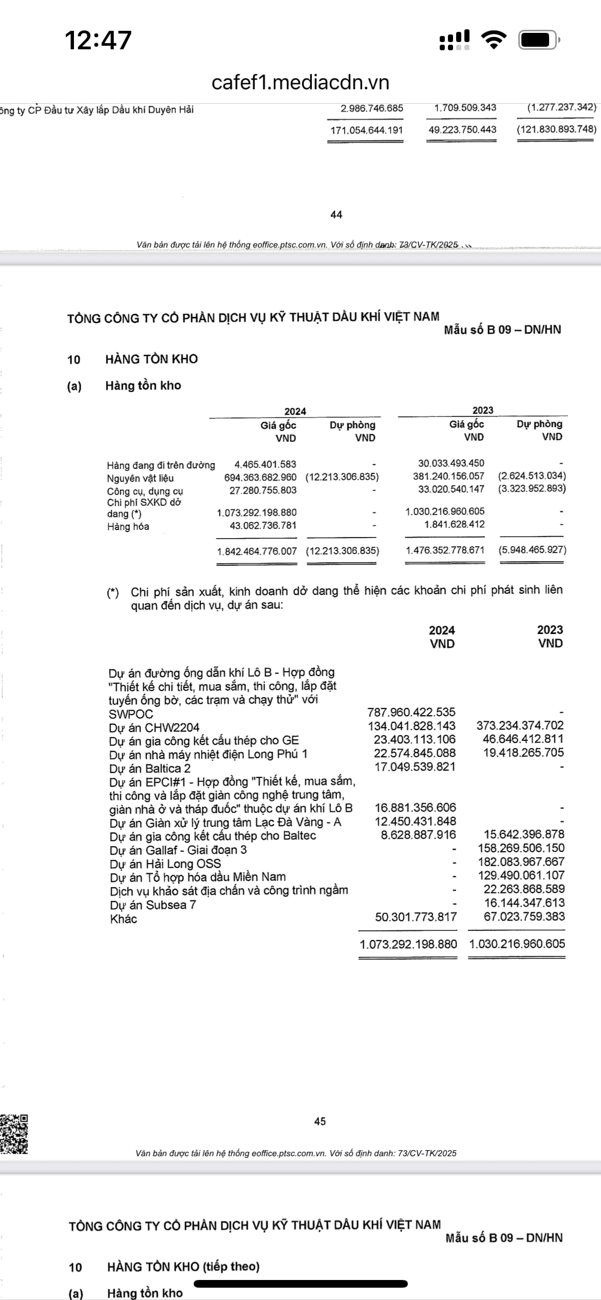 Hàng tồn kho thì ae chỉ cần quan tâm phần lô B đang tăng mạnh vì bắt đầu triển khai từ tháng 9 2024