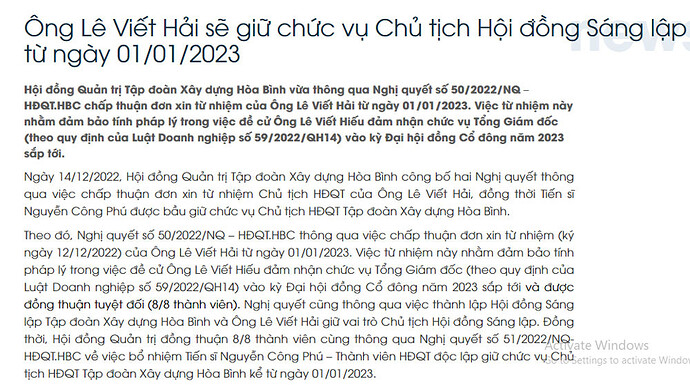 HĐQT đã bỏ phiếu nhất trí với 8 phiếu, trong đó có phiếu của ông Hải và con trai là Lê Viết Hiếu. Theo đó, HĐQT đã ra Nghị quyết 50 và Nghị quyết 51 và công bố chính thức, hiệu lực từ ngày 01/01/2023. Tuy nhiên ngày 29/12/2022, ông Hải yêu cầu triệu tập cuộc họp để hoãn thi hành việc đó, nhưng không đủ thành viên, vì ông Phú có tên trong danh sách thi hành Nghị quyết 51 đang ở nước ngoài và 2 thành viên khác cũng đang ở nước ngoài.