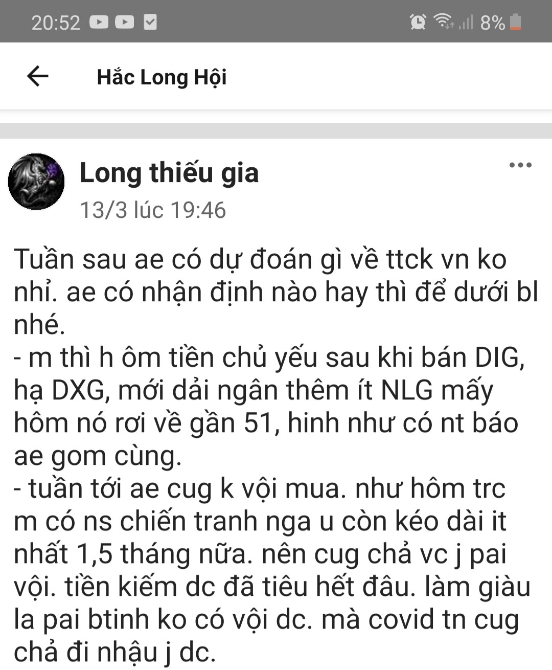 Cái vấn đề qtrong nhất đối với dig mà hiện tại t k thích nó nữa là đội lái đã hết lực, uy tín cũng bị mất hết. nên muốn kéo giá cp còn này lên là điều rất khó. kéo lên là đội bắt đáy nó lãi nh nó chốt liên tục thì đỡ tn dc. nhỏ lẻ đông như quân nguyên, sau này in thêm giấy nữa thì nồi cháo này đã ít gạo lại còn thêm nhiều nước.