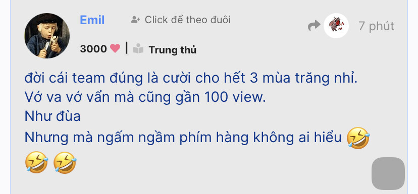 đời cái team đúng là cười cho hết 3 mùa trăng nhỉ.