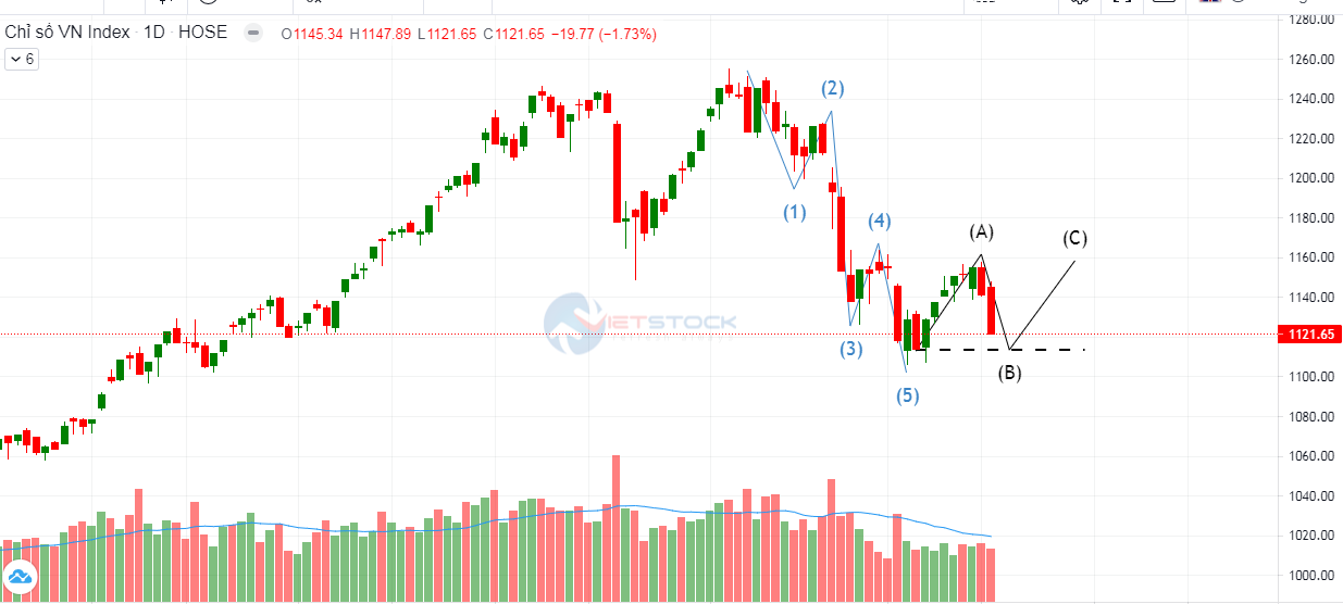 kịch bản hy vọng và tích cực nhất vẫn là đang trong quá trình đi nhịp hồi ABC.và đang đi nhịp B.và hy vọng nhịp B này ngày mai sẽ kết thúc tại đường đen đó.còn nếu lủng 1105 thì kịch bản dò đáy như cũ như đã nói trước với mọi người ấy.mọi người tự quản trị rủi ro nhé.sóng chỉ để tham khảo ở các mốc điểm số để có cái mình quan sat và hành động thực tế vẫn phải dựa vào bảng điện và NAV của mỗi người.