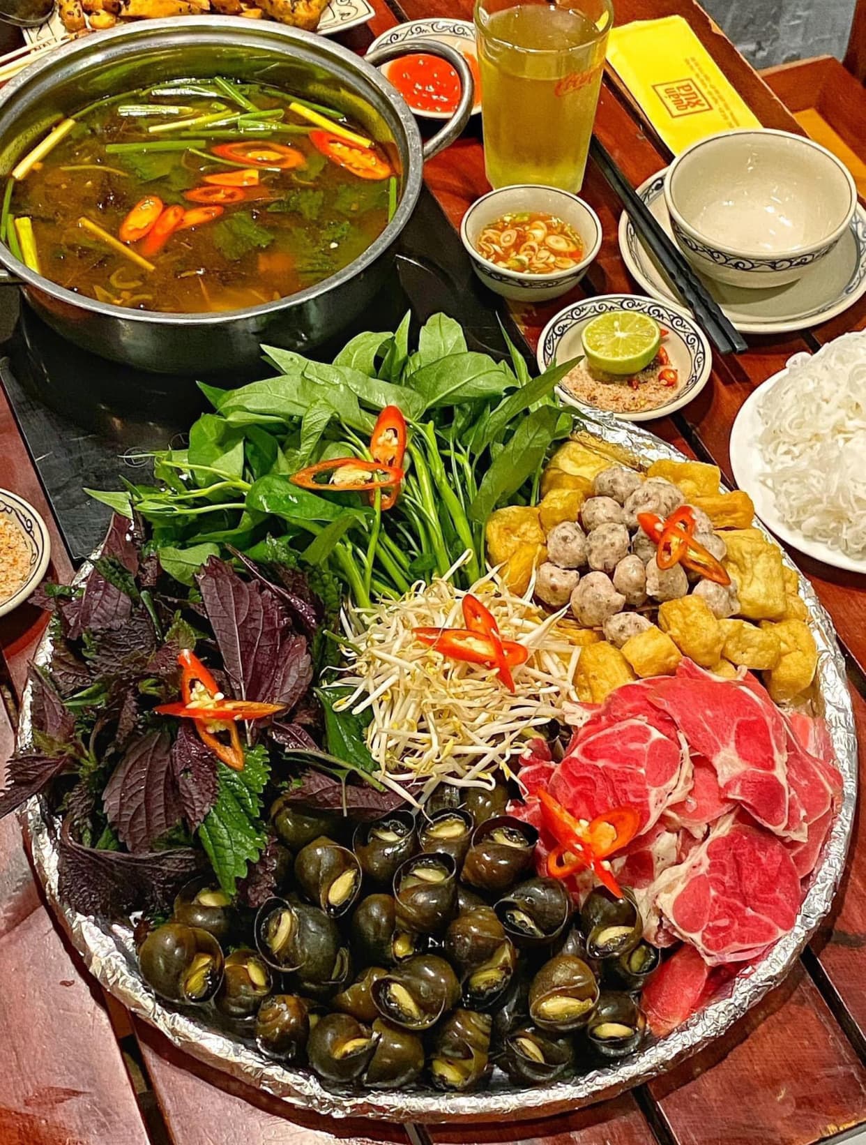 A Vui chiên gia ẩm thực phát biểu hộ em, quê mình chỗ nào mẹt lẩu ốc full mẹt như kia mà có 150k nhỉ?