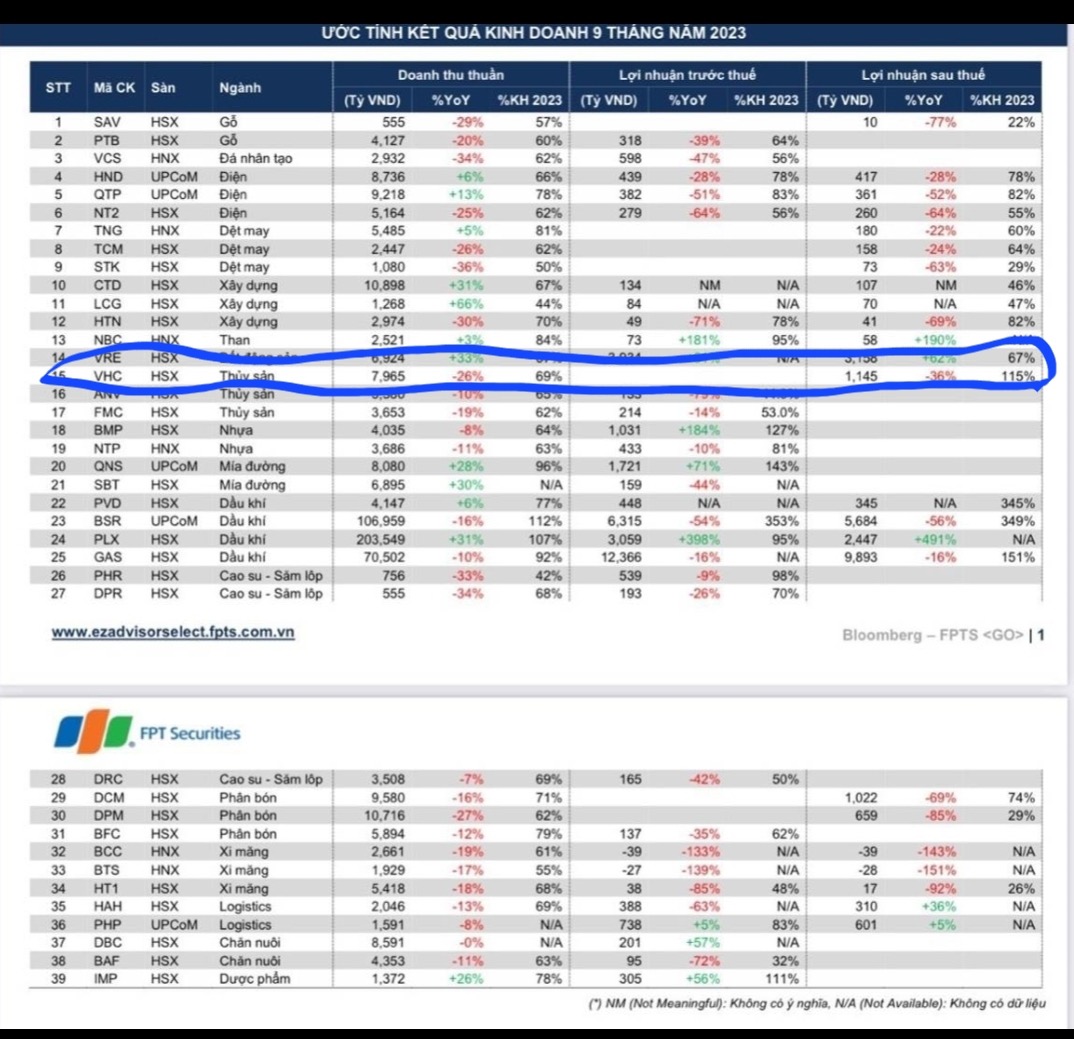 Kết quả kd dự báo một sốt cty, gửi ace tham khảo