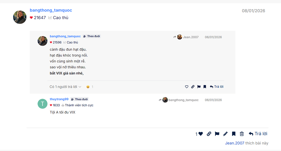 đạo huynh có thấy 3 thằng nhãi con hôm vẽ lến VIX đâu ko… thấy bảo cao thủ vẽ chart đấy… huynh làm vòng 2 thì ngon luôn…