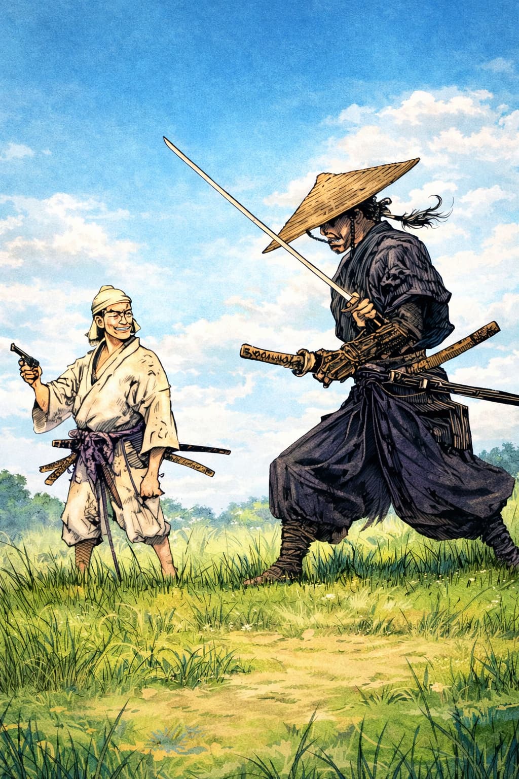 Quánh kiếm ngàn chiêu, hông bằng rút súng bắn 3 phát tím.