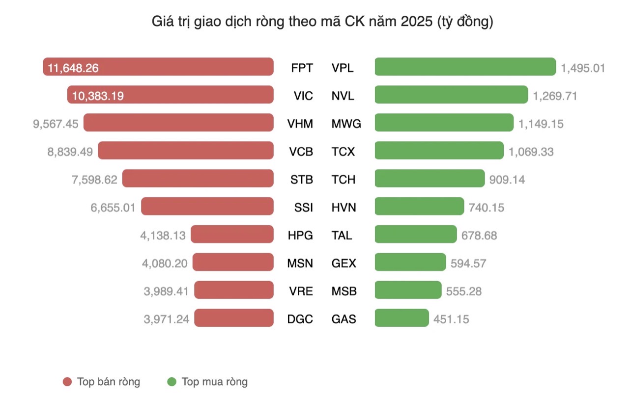 Nếu như năm 2024 chỉ ghi nhận duy nhất một tháng mua ròng với giá trị khiêm tốn 1.152 tỷ đồng, thì sang năm 2025, thị trường đã chứng kiến ba tháng khối ngoại quay lại mua ròng.