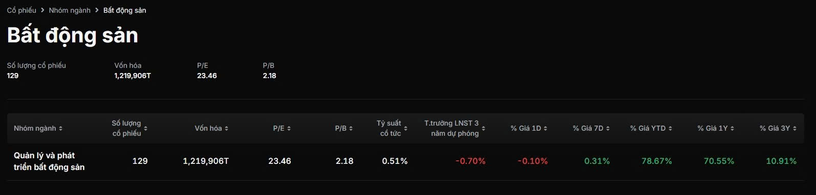 Dữ liệu ngành Bất động sản và các cổ phiếu liên quan
