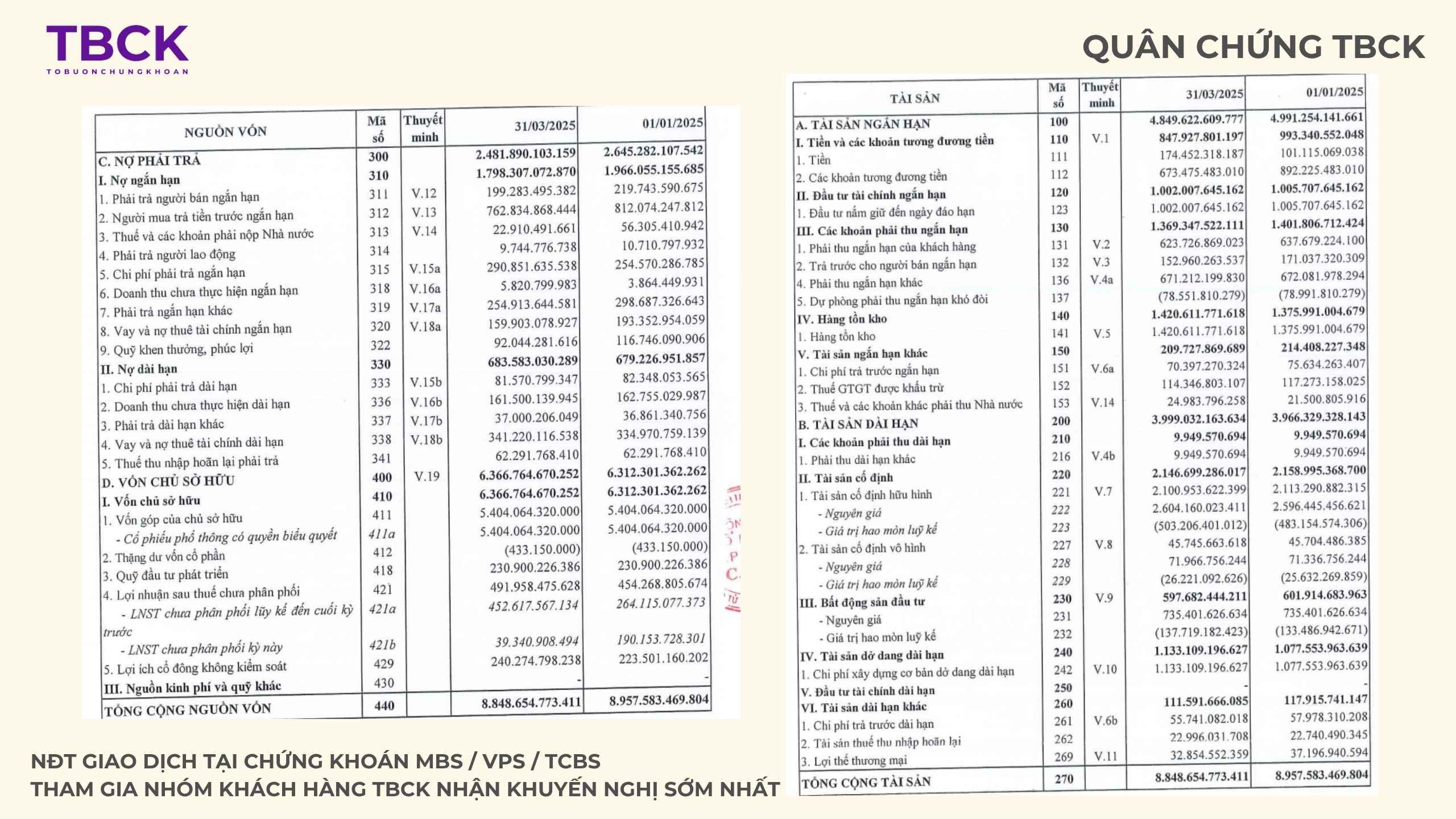 - Tổng Nguồn Vốn: 8.848 tỷ đồng.