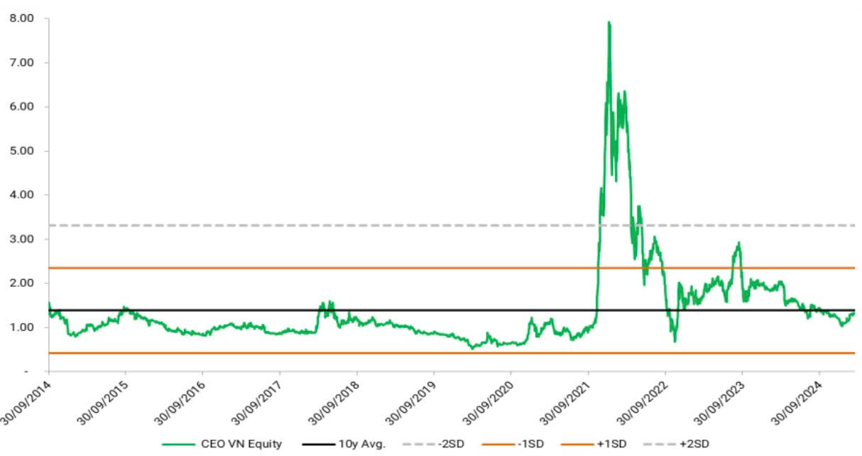 Diễn biến P/B 10 năm của cổ phiếu CEO