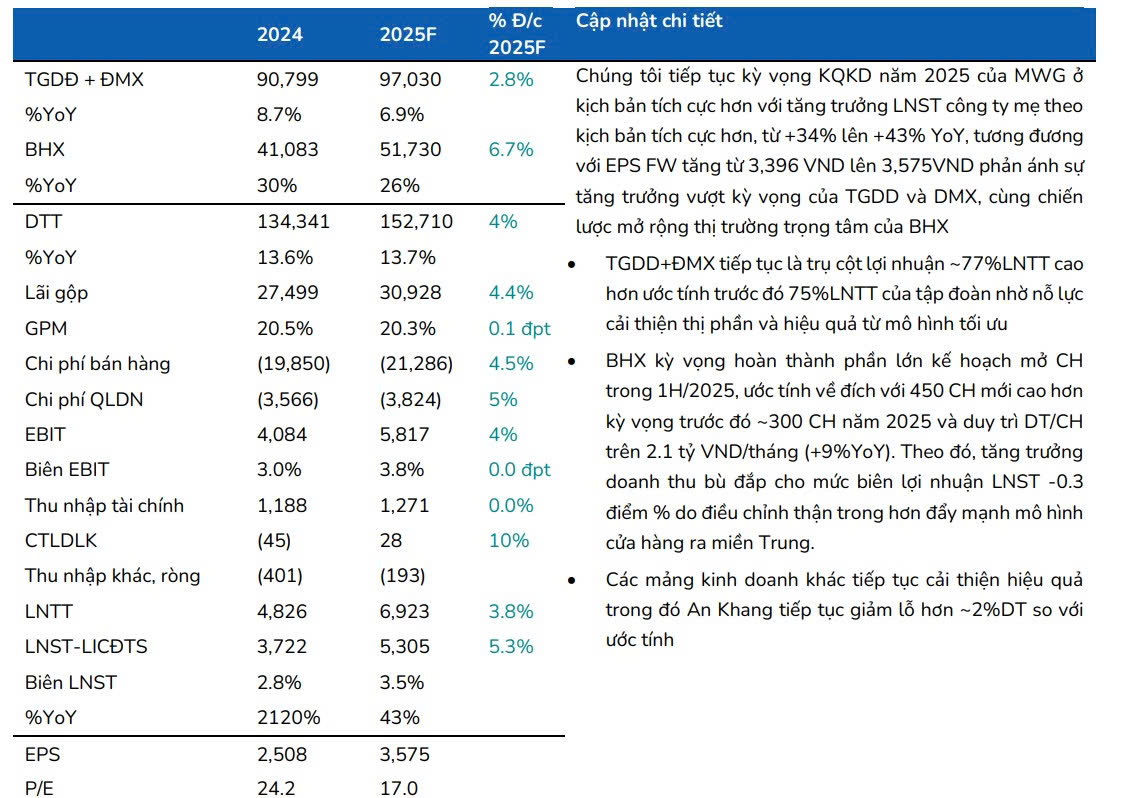 Dự báo của BSC dành cho Cổ phiếu MWG 2025