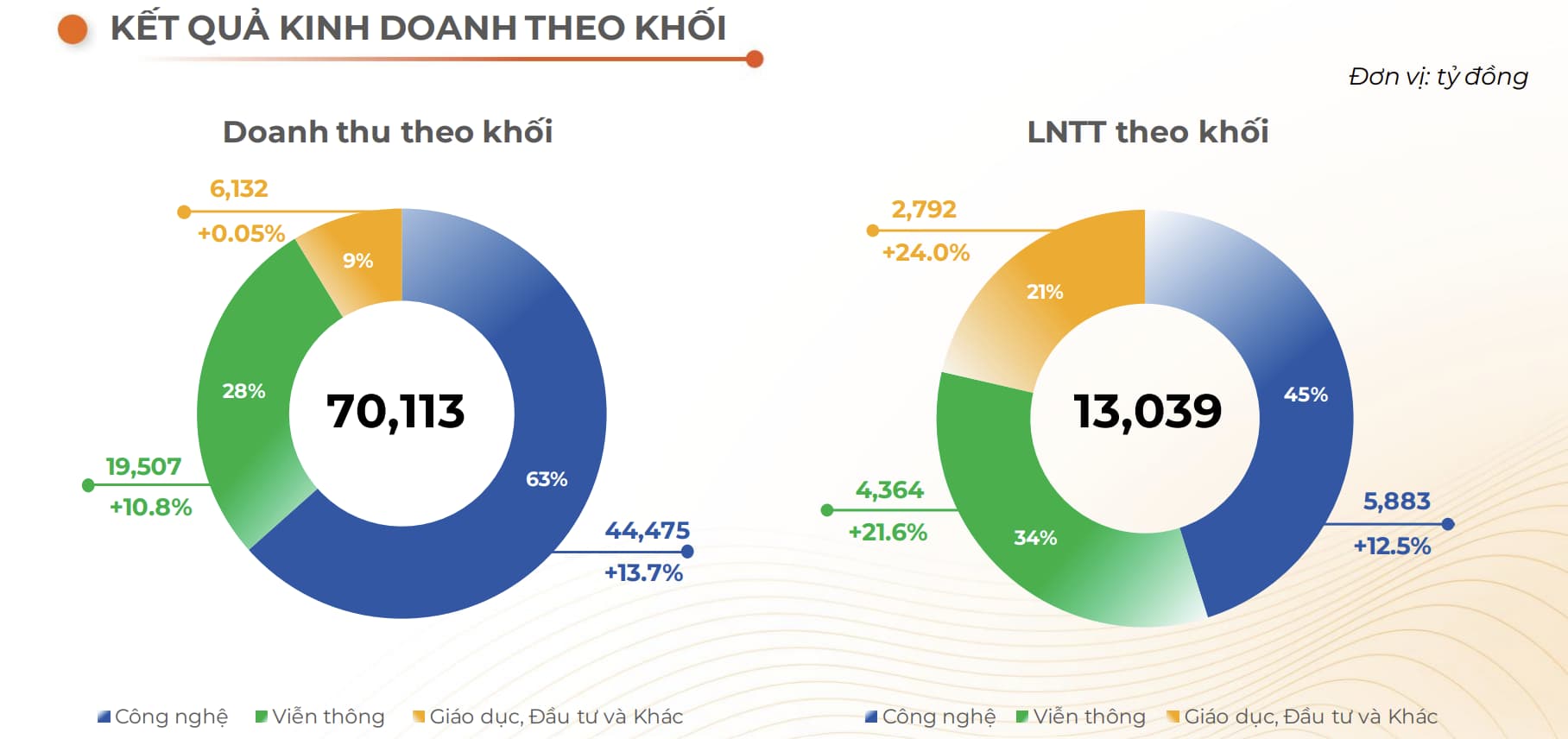 Trong năm 2025, khối Công nghệ đóng góp khoảng 63% tổng doanh thu (44.475 tỷ đồng) và 45% lợi nhuận trước thuế (5.883 tỷ đồng). Đáng chú ý, riêng mảng CNTT nước ngoài chiếm tới 80% doanh thu và 90% lợi nhuận của khối Công nghệ. Điều này khiến FPT trở nên nhạy cảm hơn với các thay đổi mang tính cấu trúc của ngành, đặc biệt là sự phát triển nhanh của AI tạo sinh (GenAI).