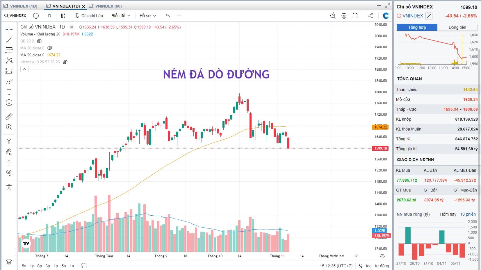 Xu hướng giảm điểm của thị trường thật ra đã được cây nến ngày 3/11 báo trước rồi. Chẳng qua là những người cầm hàng sẽ lờ đi những dấu hiệu mà mình không muốn nghe. Team Wealthee đã xử lý tài khoản của mọi người vào 2 ngày sau đó và tuyệt đối không mở mua lại tới hiện tại. Trên thị trường nói về VNIndex đã trở nên rẻ, có thể là do đa số trên thị trường đang cầm hàng, thế nhưng không ai nói về việc tôn trọng xu hướng của thị trường. Và xu hướng đấy đang thể hiện GIẢM Cơ hội chỉ đến với những ai còn tiền, và có thể tuần này chúng tôi sẽ bắt đầu đi săn những cổ mà thị trường phải bán lại giá rẻ cho chúng tôi (cũng có thể không). Mọi người muốn nghe phân tích sâu hơn về trạng thái thị trường hiện tại không ?