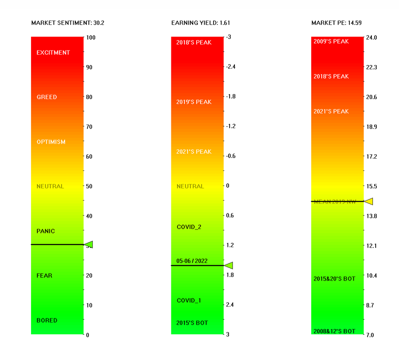 Trong khi đó, công cụ Market Sentiment cũng đã sụt giảm trở lại và đi về vùng gần 30%; công cụ này sẽ cho tín hiệu mua trở lại trong trường hợp sụt giảm về vùng 20-30%.