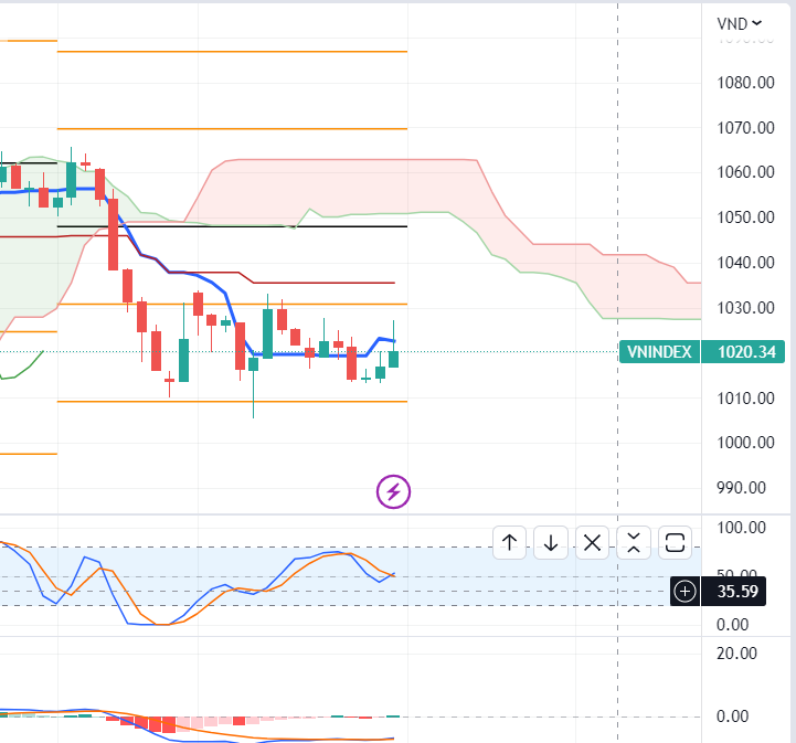 → nếu duy trì tốt trên baseline, base line chưa cắt lên conversion line vẫn còn cơ hội thoát mây ở 1060